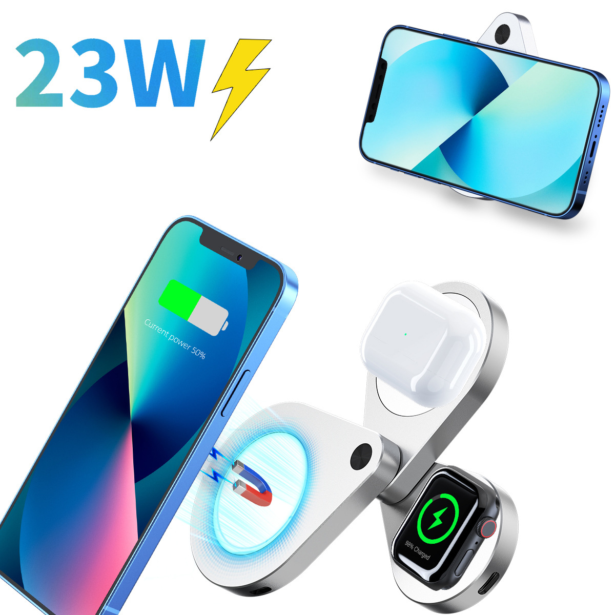 Magnet Wireless Charger 3 in 1 for Apple 12/13iWatch 23W Quick charging station stand